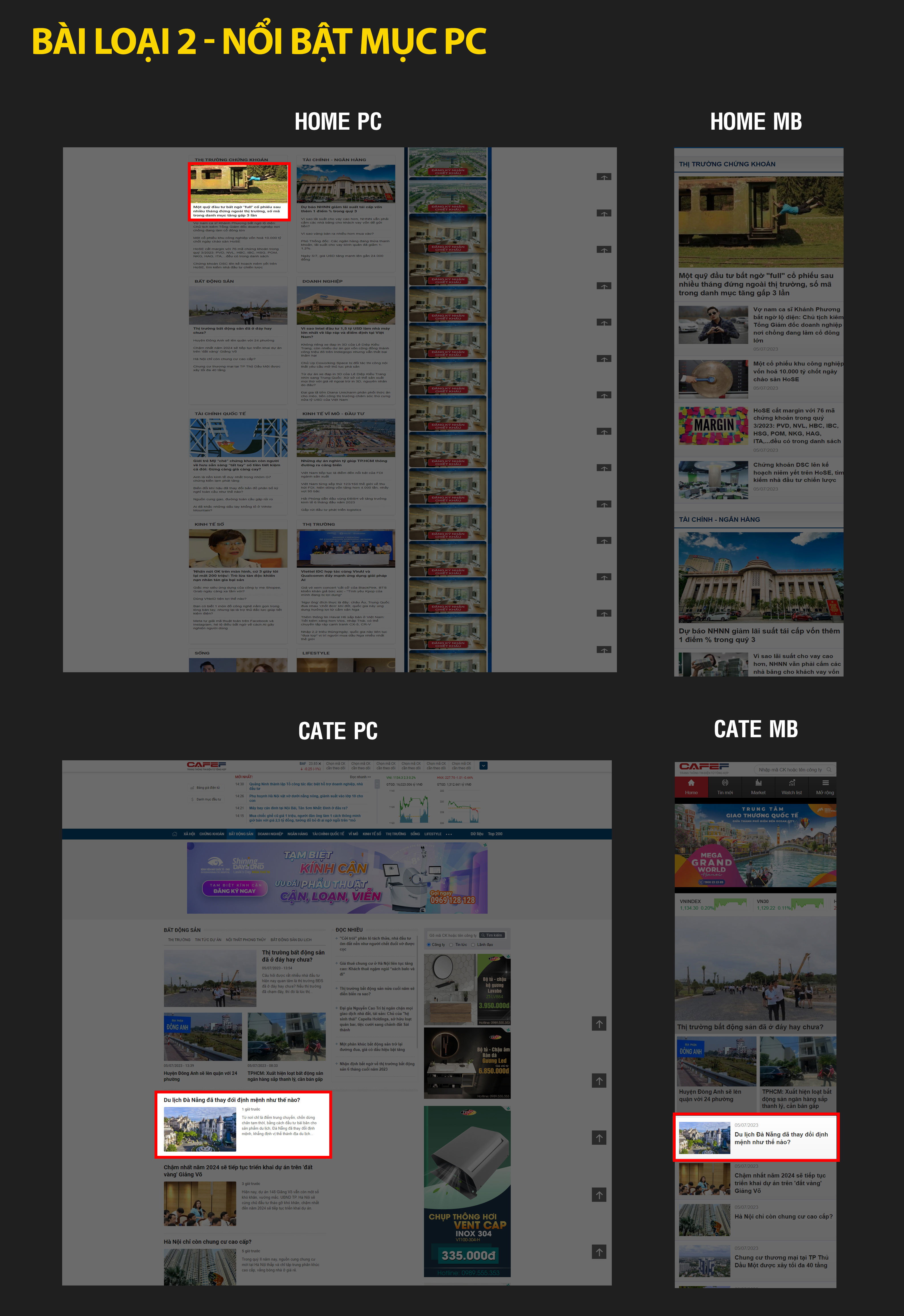 | Bài loại 2 - Nổi bật mục - Pc + Mobile + AppDEMO | - Bài nổi bật số 1 Chuyên mục trên trang chủ 3 bản (Pc + Mobile + App) - Bài trong chuyên mục tương ứng | 65.000.000 | 45.000.000 | 22.000.000 | 16.000.000 |