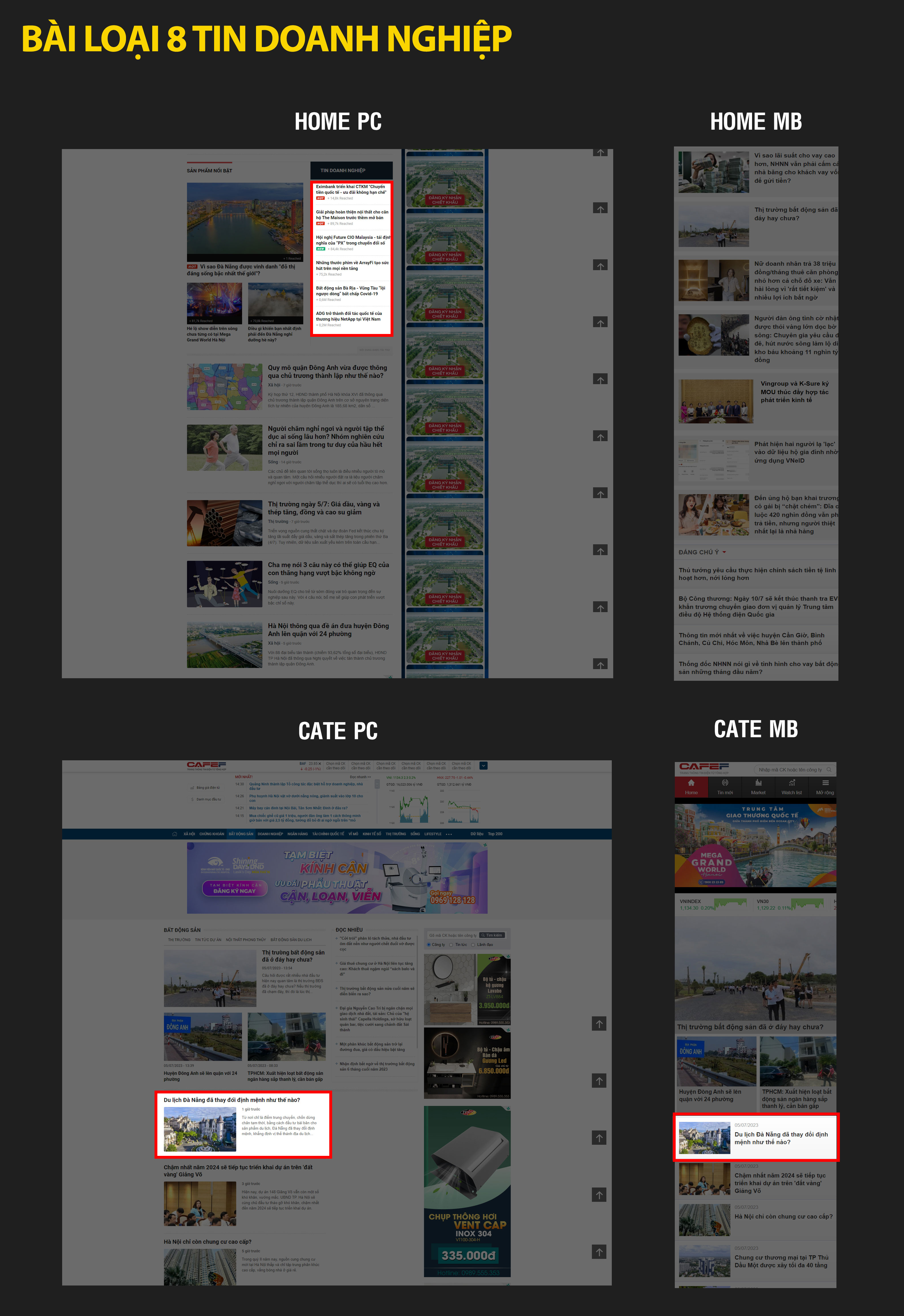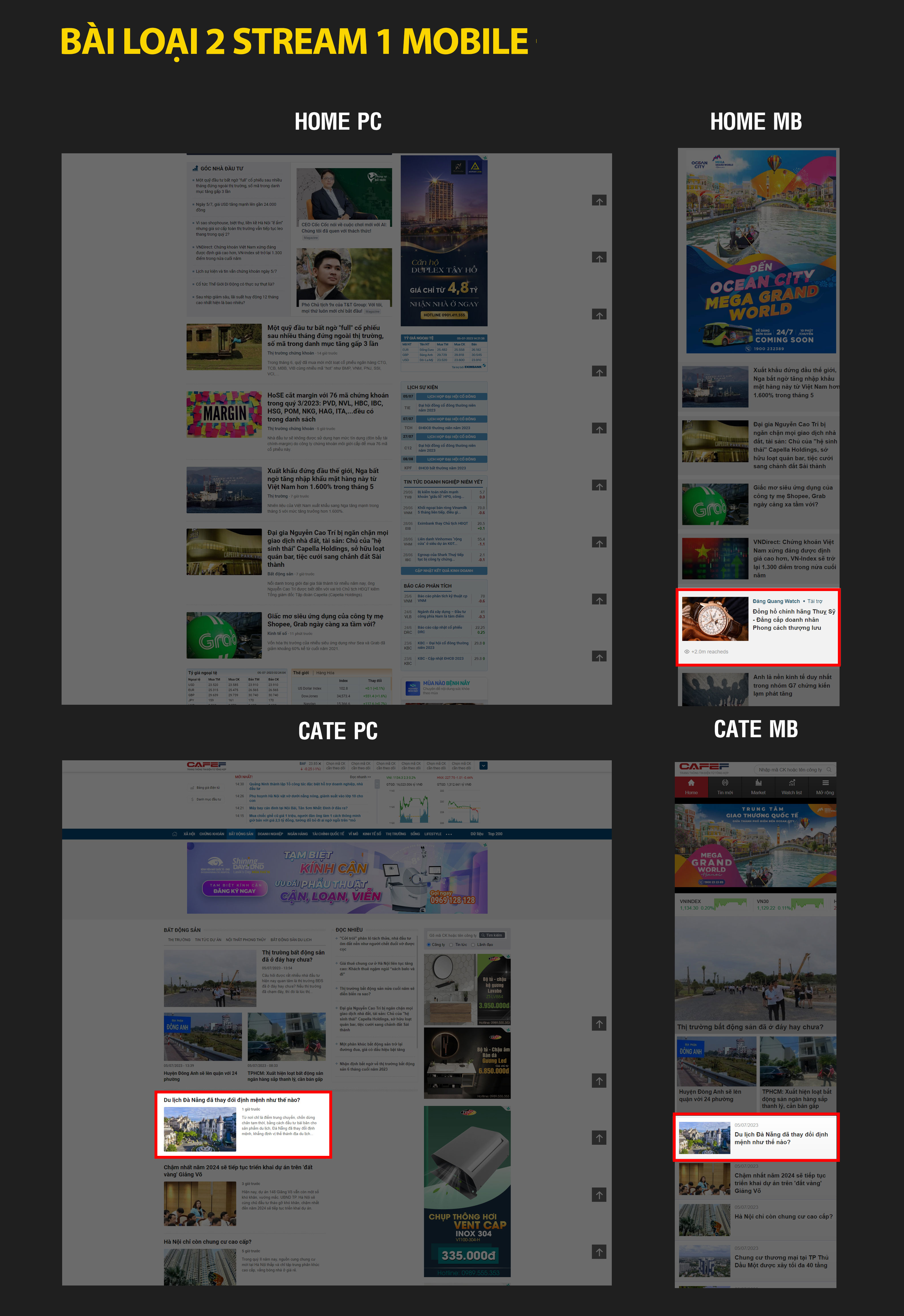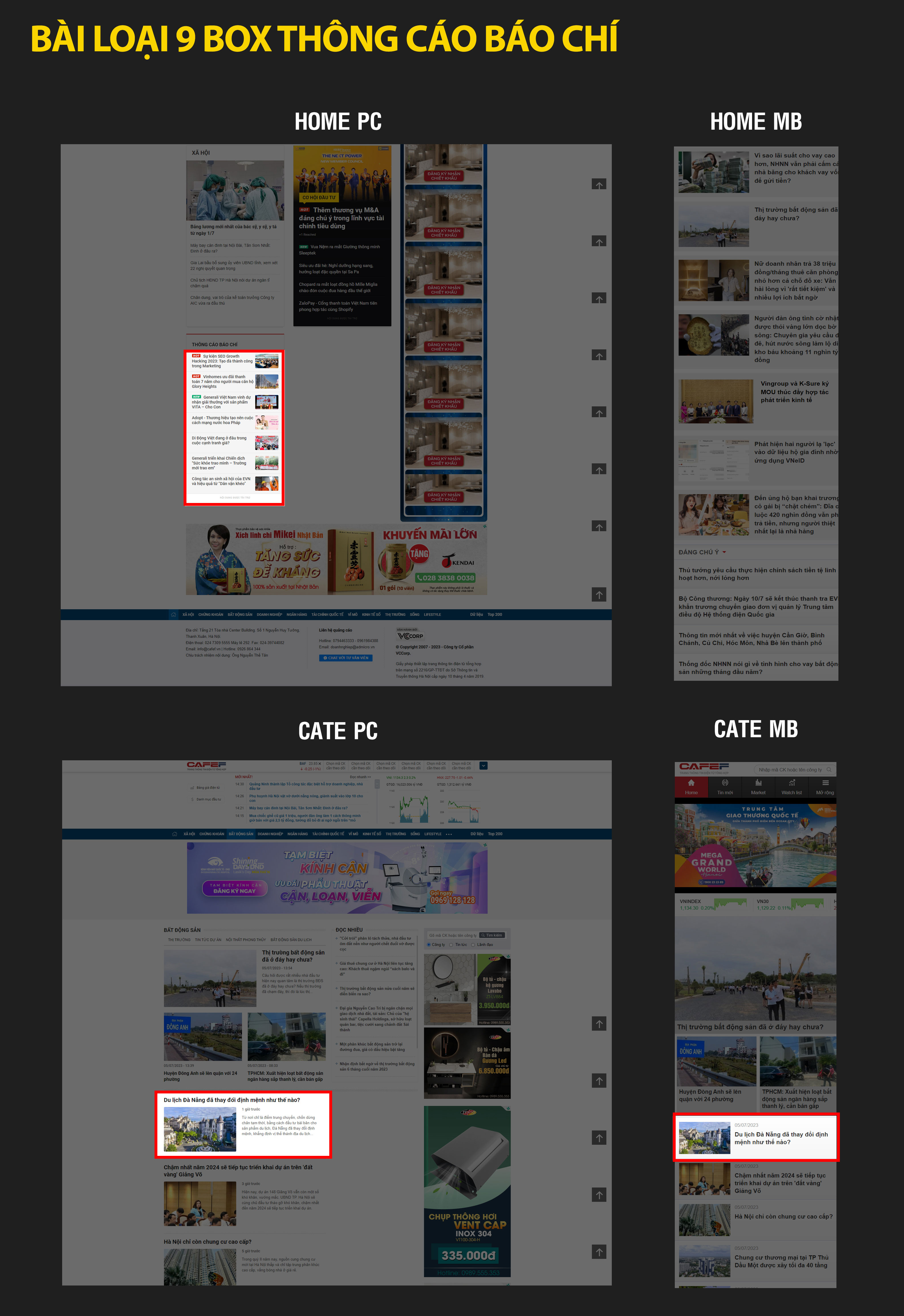 Sau đây là bảng báo giá booking PR trên CafeF kèm theo Demo cụ thể tương ứng với từng vị trí trên giao diện PC, Mobile website cafef.vn và trên ứng dụng CafeF.