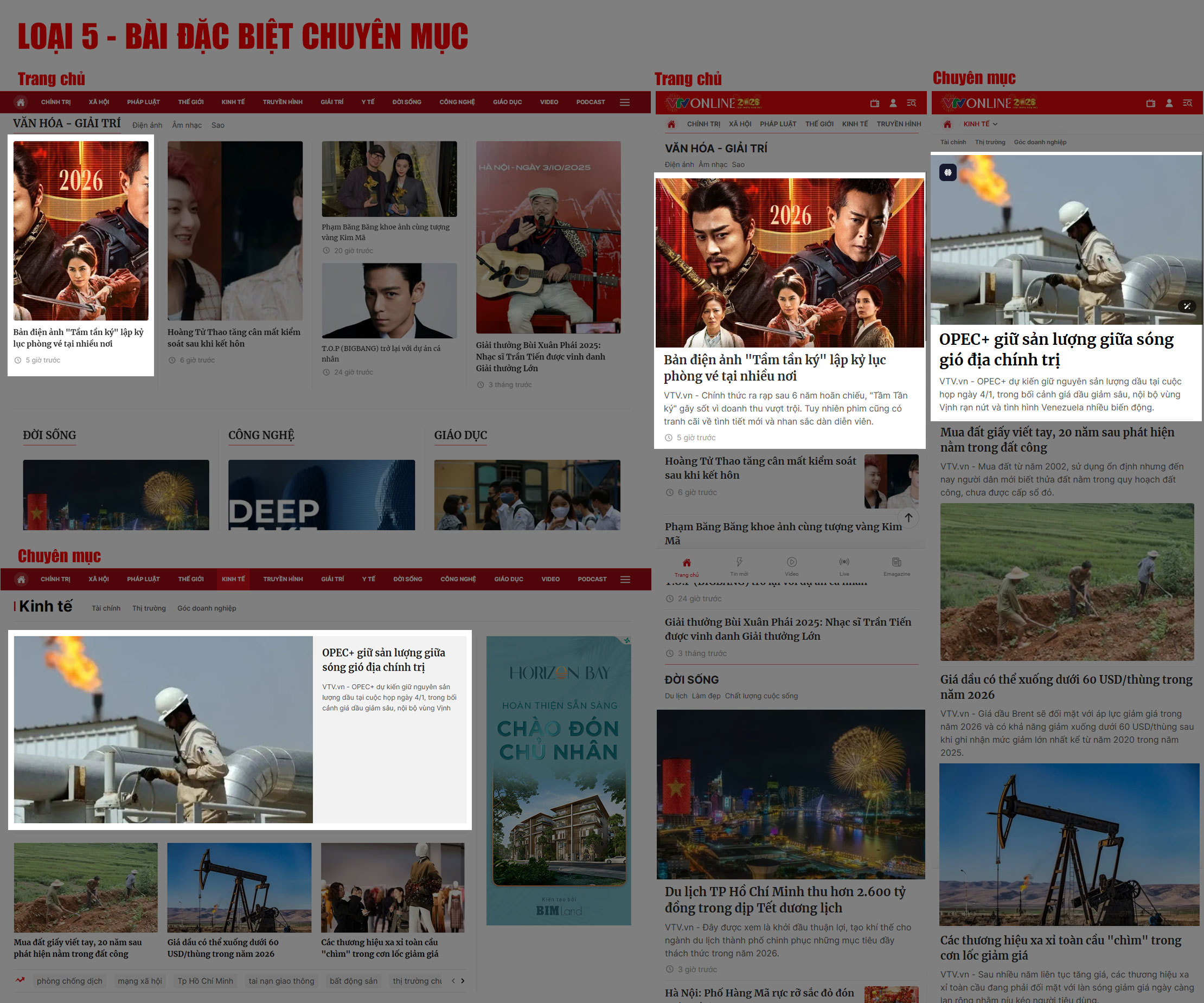 - Đối với các bài có vị trí đặc biệt do phóng viên chuyên trách của báo viết, chỉ áp dụng với những nội dung sau: