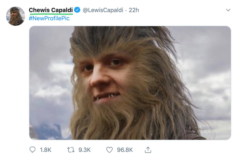 Ngay lập tức, Gallagher tiếp tục gọi Capalidi là F***ing Chewbacca. Capaldi không ngần ngại đổi ảnh Twitter của mình thành Chewbacca và thay tên tài khoản thành Chewis Capaldi.